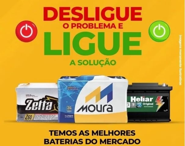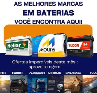 Baterias automotivas, para todos os tipos de veículos, nacionais e importados.