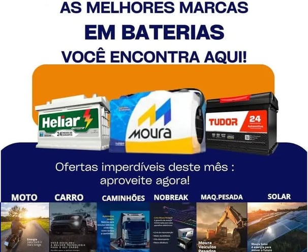 Baterias para automóveis, indústrias, sistemas solares e muito mais, com qualidade garantida.